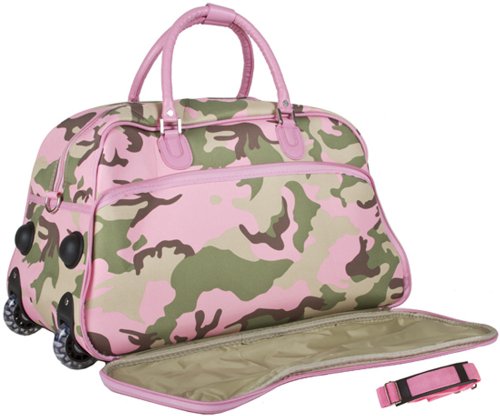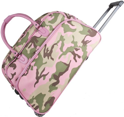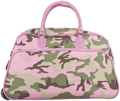 -. Title : World Traveler Pink Camouflage Rolling Wheeled Duffle Bag 21-inch
