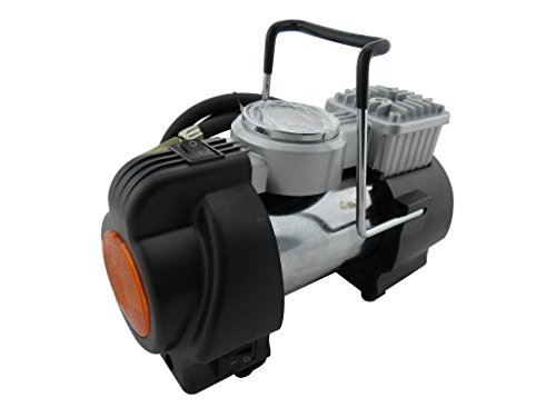 -. Feature : 150PSI (11 Bars) Maximum Pressure;Powered by DC12V 3m(10ft) power cord with car cigarette lighter; / Emergency Light; Flashing warning light; / Compressor ON/OFF switch;Maximum Ampere: 15A; / Air gauge included;Rubber Air hose with copper screwing Plug; / Very comfortable handle;Accessories: 2 nozzles and 1 sport needle.