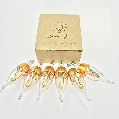 E12 Candelabra Base LED Bulb, 5W LED Filament Candle Light Bulb, C35 Flame Shape Bent Tip, Incandescent Replacement, 3000K Warm White, (6-Pack) Bravelights