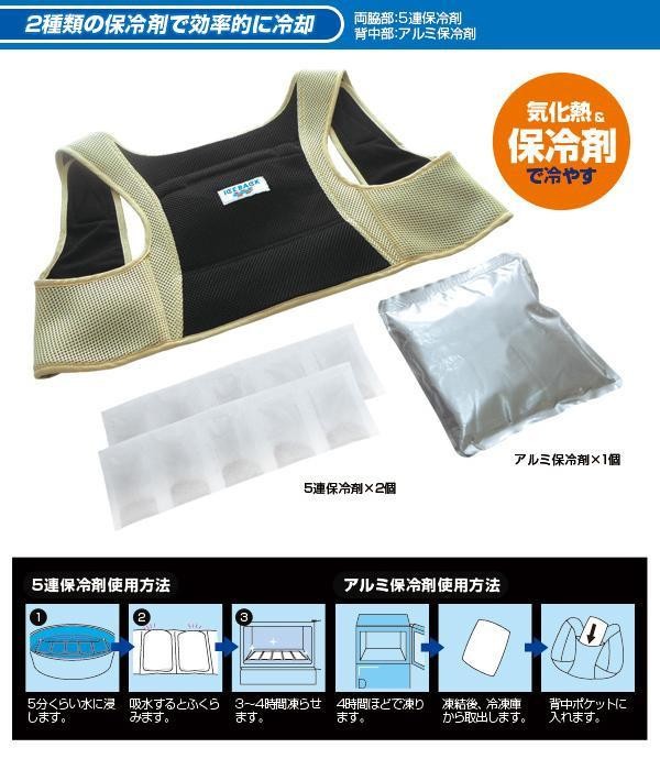 | セット内容 | 本体(保冷ベスト)、背中用アルミ保冷剤×1個、脇用5連保冷剤×2個 |