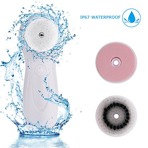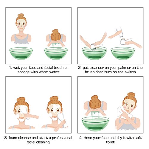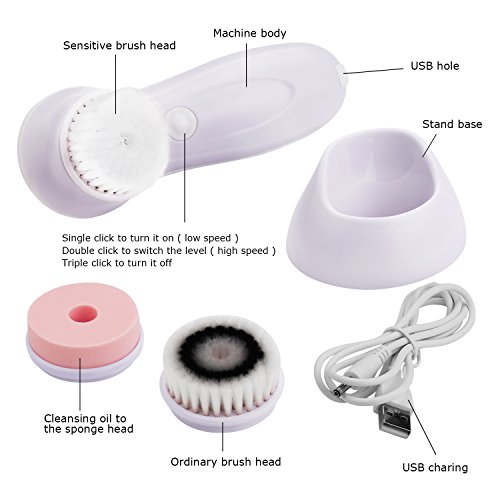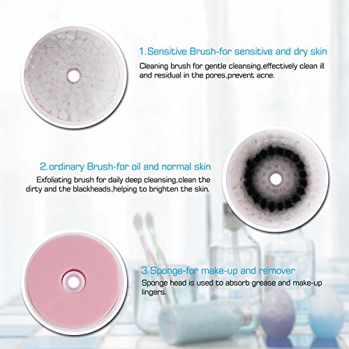 - 【 3 IN 1 CONVENIENT FACIAL CARE SYSTEM 】 --- Our facial cleanser with 3 interchangeable brush heads gives you the full range of cleansing from a gentle surface nursing to thorough pores cleaning. A soft finespun brush for sensitive skin, a sponge head for absorbing grease and make-up lingers, and an exfoliating brush for deeper cleaning.