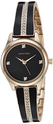 Armitron Women's 75/5208BKGPBK Swarovski Crystal Accented Gold-Tone and Black Bangle Watch