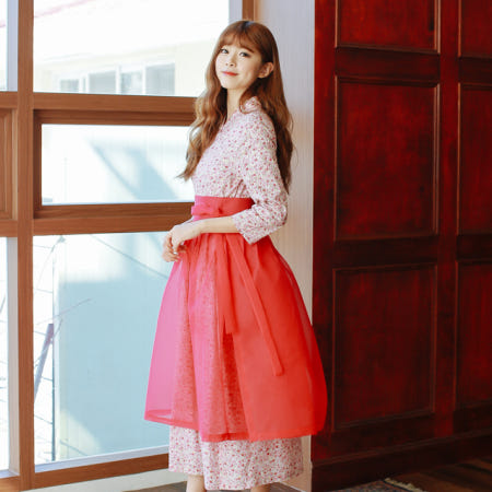 철릭원피스 세트 꽃밭 핑크