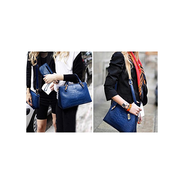 원본상품명: クロコダイル 型押し レディス ハンド バッグ ショルダ ポチ 2way 3点セット