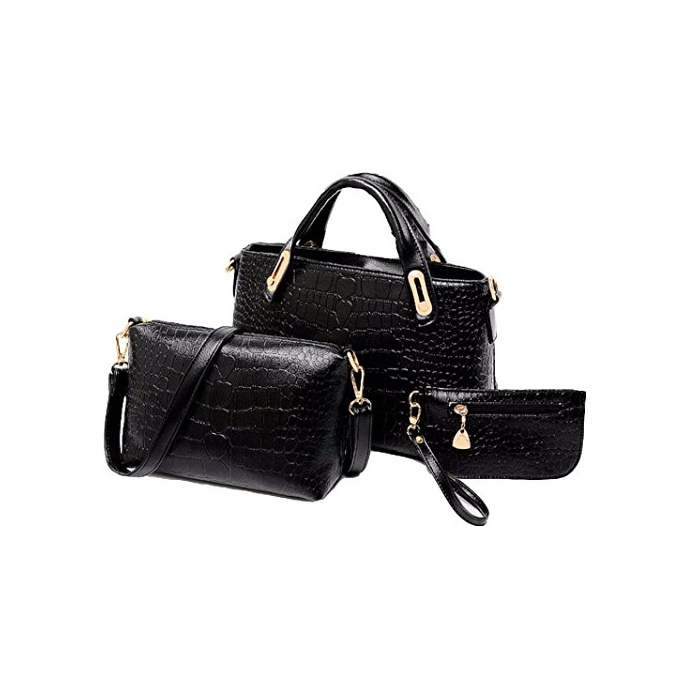 4cool 크로커다일 레이디스 핸드백 숄더 파우치 2way 3점 세트 (블랙)