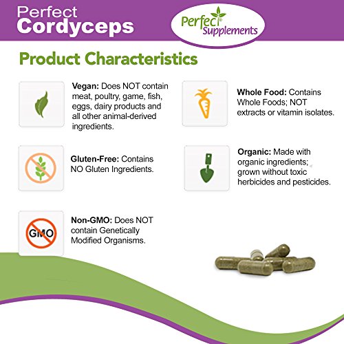 -. Feature : ENERGY BOOSTING: Perfect Cordyceps can boost energy, endurance, and vitality. Cordyceps was named one of the best natural energy boosters by Alternative Medicine Magazine! / STRESS REDUCING: Perfect Cordyceps is an adaptogenic herb, meaning it can resist physical, mental, and chemical stress on the body. / IMMUNITY IMPROVING: Cordyceps may help boost the immune system with its adaptogenic properties. Plus, Perfect Cordyceps is grown, processed, and encapsulated in the USA, with no fillers, flow agents or artificial ingredients. / DIET FRIENDLY: Gluten free, Vegan, Paleo, Dairy-free, and Legume free, Perfect Cordyceps is an excellent supplement for anyone with special diet considerations. / HIGHEST QUALITY: Lab tested and made with care by the highest quality mushroom grower. Our cordyceps are Organic and GMO-free.