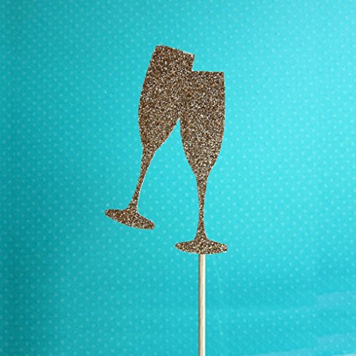 Various Designs of Sexy Pole Dancers/High Heels/Corset/Champagne Glasses/Bride & Groom Cupcake Toppers for Birthday/Bridal Sower/Weddingd/New Years Events/Party sets of 12… (Double Gold Champagne)