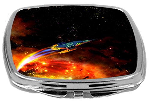 Rikki Knight Compact Mirror, Red-hot Spaceship and Nebula, 3 Ounce