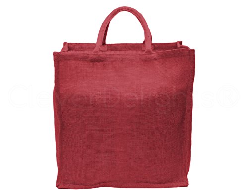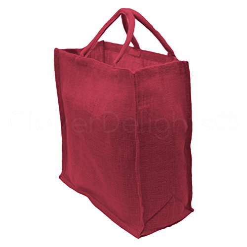 10 Pack - CleverDelights Red Burlap Shopping Bags - 16" x 17" x 8" - Cotton Handles - Burlap Tote Bag