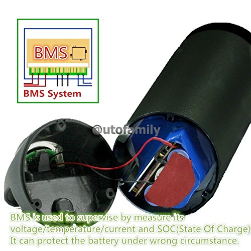 Specification: Battery Type:BOTTLE Lithium-ion Rated Voltage / capacity:36V / 10Ah Battery N.W/G.W: 3.22KG/3.62KG Battery Size(mm): D90*H340 Case Material:ABS Aluminium alloy Battery Color:Black Batteries combinations:10-S,5-P Component: Li(NiCoMn)O2 Cell quality: 18650-2000mAh Impedance: ≤150mΩ Recommend to use:200W-350W Discharge Standard current:10A-13A Discharge Max current:28A-30A Discharge Cut-off voltage:30V Discharge cycle life:800 times Discharge method :Bottom discharge Fuse Installation position:Inside on the PCB Fuse Diameter(mm):5 Fuse Length(mm):30 Fuse Current: 30A