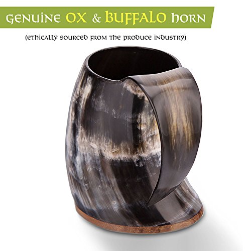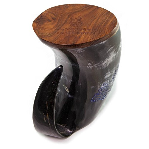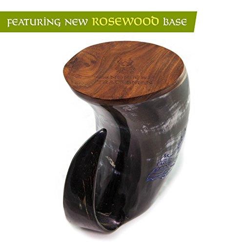 Norse Tradesman Genuine Viking Drinking Horn Mug - 100% Authentic Beer Horn Tankard w/ Rosewood Bottom and Ring Engravings | 24 Ounces | The "Eternal"