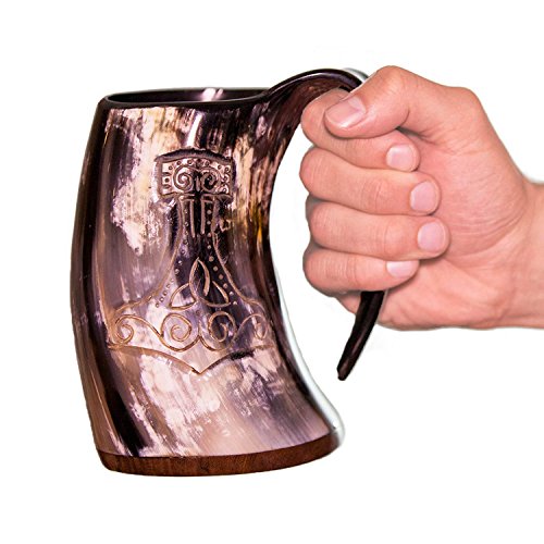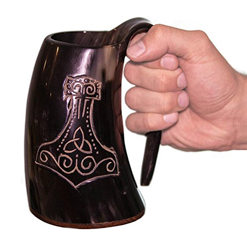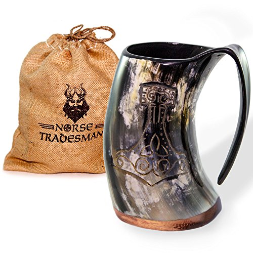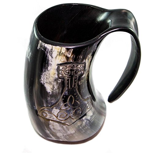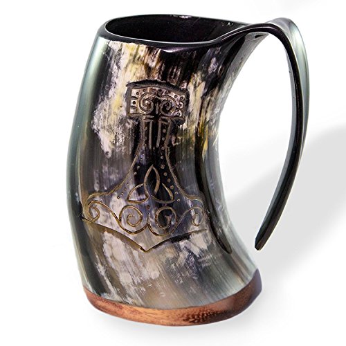 Norse Tradesman Genuine Viking Drinking Horn Tankard (4, The Mjolnir)