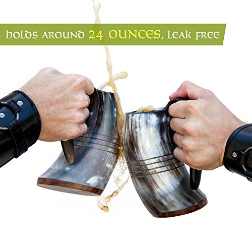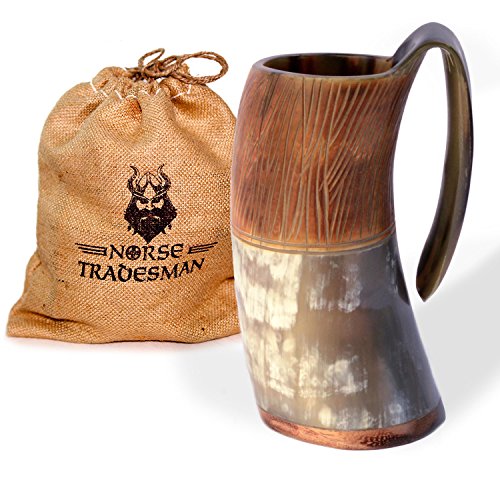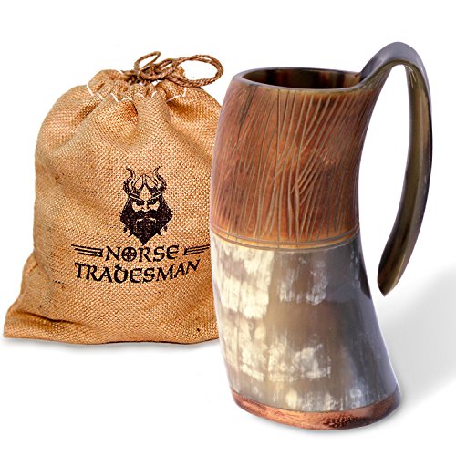 Norse Tradesman Genuine Viking Drinking Horn Mug - 100% Authentic Beer Horn Tankard w/ Intricate Engravings | 24 Ounces | The "Jarl"