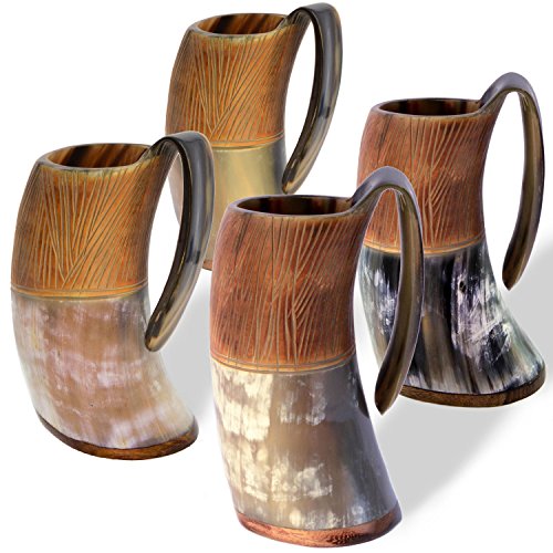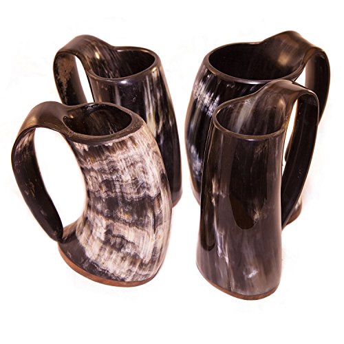 Norse Tradesman Viking Horn Mug Tankard Set w/ Burlap Gift Sack | 24 Ounces | Set of 4