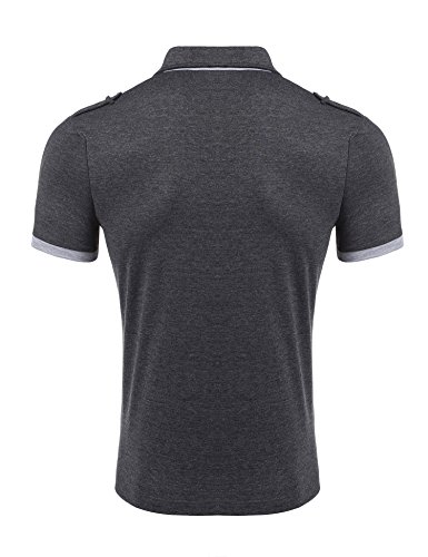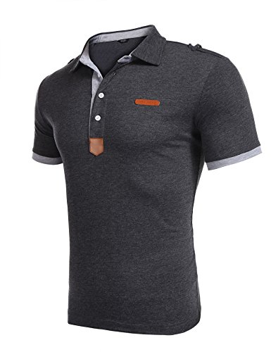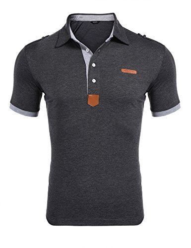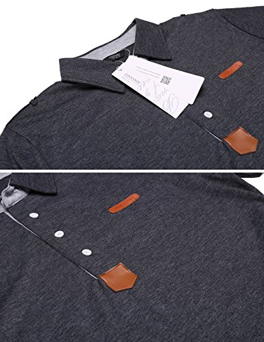 쿠우(Qoo) 파운데이션 (쿠우(Qoo) 파운데이션)Coofandy 폴로 셔츠 반소매 비지니스 캐주얼 맨즈 무지 여름 옷 통근 일 골프 평상복 껴입은 옷 버튼 다운 대비색 멋쟁이 큰 사이즈 흑백 네이비 그