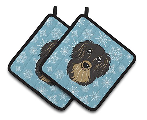 Caroline's Treasures Snowflake Longhair black & Tan Dachshund Pair of Pot Holders BB1647PTHD, 7.5HX7.5W, Multicolor