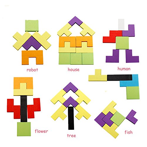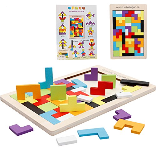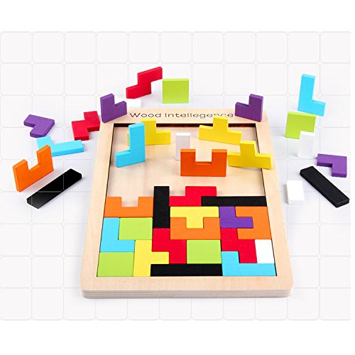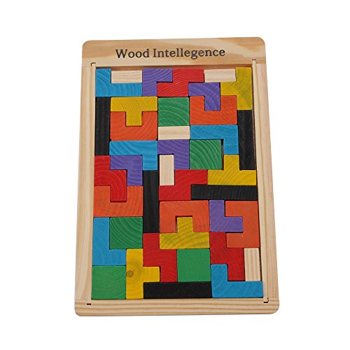-. Title : Wooden Blocks Colorful Tetris Puzzle Blocks Toy Game Educational Toys With Storage Board 40 Pcs Color Random
