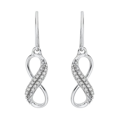 These modern infinity dangle earrings are made all the more elegant by the diamonds. It is beautifully rendered from lustrous sterling silver and accented with sparkling diamonds.Feature