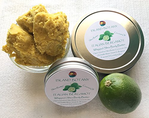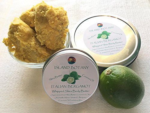 Italian Bergamot Whipped Shea Body Butter. Fair trade, organic, raw, unrefined, unbleached, golden Shea Butter. Soothes, Heals, nourishes, protects, soften, hydrate irritated skin & dermatitis 8 ozs