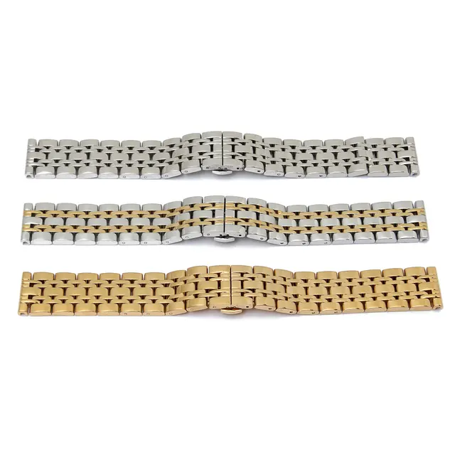 | [해외] 20 미리메터 스테인레스 스틸 손목 네 색상 푸시 버튼 스트레이트 엔드 골드 실버 골드 + 실버 스트랩 금속 시계 팔찌 |