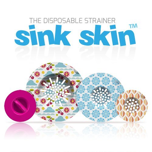Sink Skin – JUMBO SURPRISE PACK- 15 Disposable Kitchen Sink Strainers (min 5 Designs)+3 Bath Tub Strainers+3 Bath tub Plugs. For a Cleaner Kitchen&Bathroom every few weeks. Hygienic. Smart. Healthier