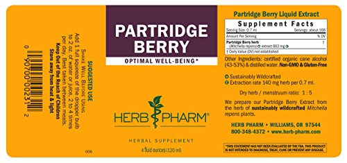 Herb Pharm Partridge Berry (Squaw Vine) Extract - 4 Ounce