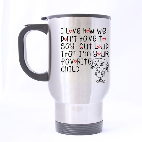 Fashion Design Mug for Mom/Dad from Daughter/Son - I Love How We Don't Have To Say Out Loud That I'm Your Favorite Child Stainless Steel Travel Mug (Silver)-14 ounces