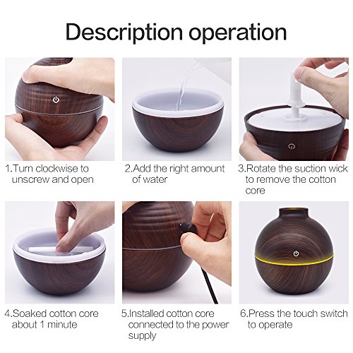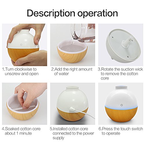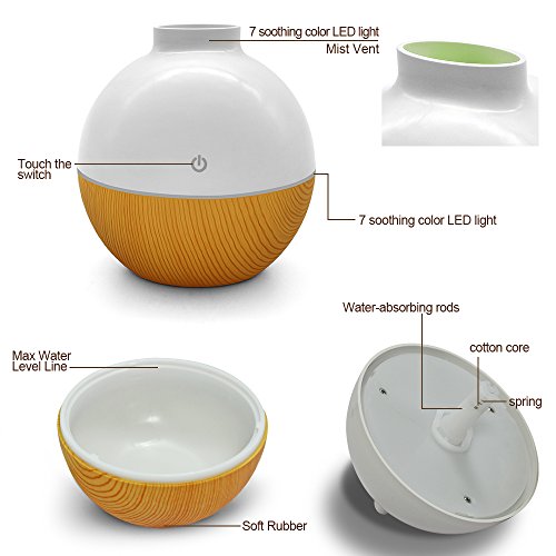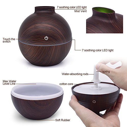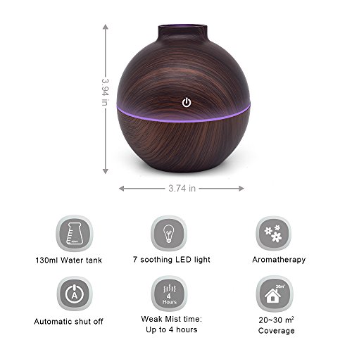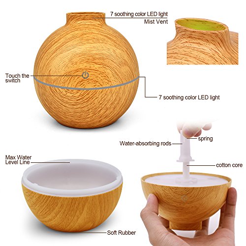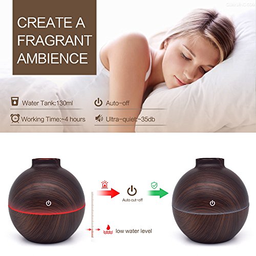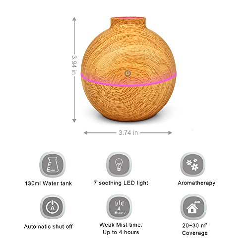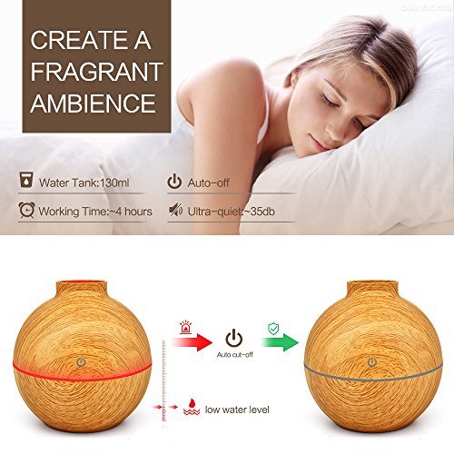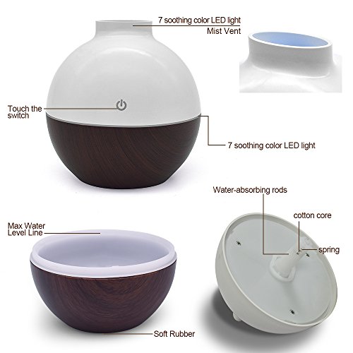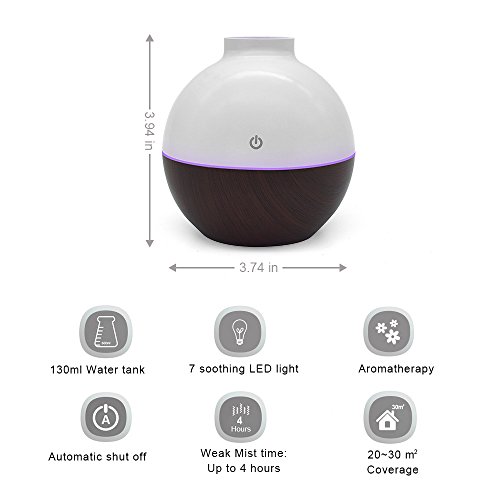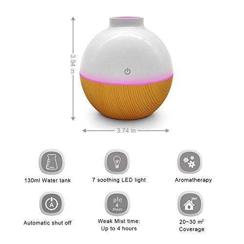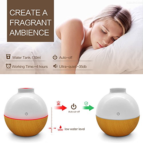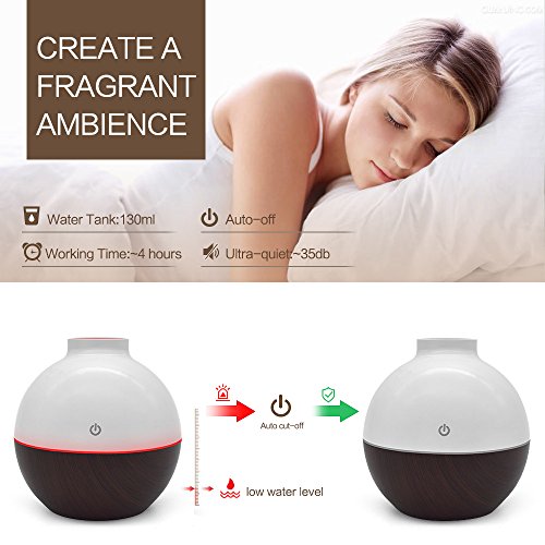 KBAYBO Aroma Diffuser Humidifier Essential Oil Diffuser Air Purifier USB Portable 130ml Touch Sensitive 6 Color LED Lights Changing for Home Office Baby Room Bedroom Yoga Spa Hotel