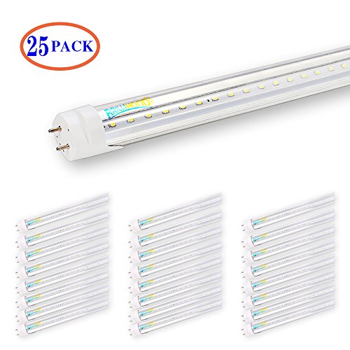 Brillihood T8 LED Shop Light Tube, 4FT, 18w (40W equivalent), Dual-End Powered, 6000K Cool White, 2000 Lumens, Clear Cover Lens, T8 T10 T12 Fluorescent Bulbs Replacement, (Pack of 25)