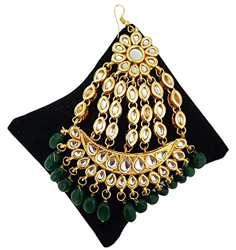 Stunning traditional heavy kundan & green stones jhumar passa for bold women of today. This jhumar passa is an ideal statement piece to compliment any special occasion. It can be worn as maang tikka also. It's a perfect accessory for your wardrobe & gift for girls / women.Feature