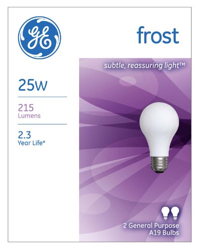 GE Lighting 97864 25-Watt 215-Lumen General Purpose A19 Incandescent Light Bulb, Inside Frost, 2-Pack