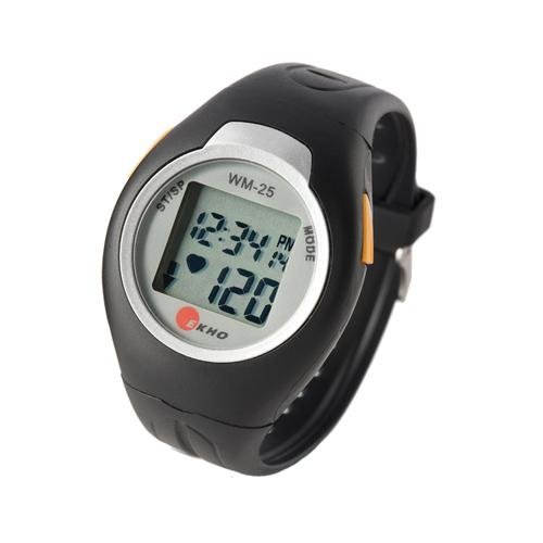 The WM in the WM-25 stands for weight management, telling you all you need to know about the Ekho WM-25 heart rate monitor watch. Unique to Ekho heart rate monitors, the unit's weight management feature lets you enter how many calories you want to burn during the day. Then, as you work, walk, exercise, and play, the watch tells you how many calories you've scorched on your way to your goal. It's a terrific way to keep fit, and it makes sure that you don't overlook your daily activities as important allies in your weight loss plans. Plus, it's designed to interface with the heart-rate-interactive equipment in most health clubs, adding even more versatility to the mix.In addition to its weight loss functions, the WM-25 tracks your current, average, and maximum heart rate, while also offering a target alarm that lets you know whether you're working in, above, or below your target heart rate zone. As a result, you'll maximize your caloric burn and enjoy the most effective cardiovascular workout available. Other features include time and date functions, a stopwatch, an audible "alarm off" mode, and an ultra-slim ergonomic chest belt transmitter. The water-resistant WM-25 carries a five-year warranty.