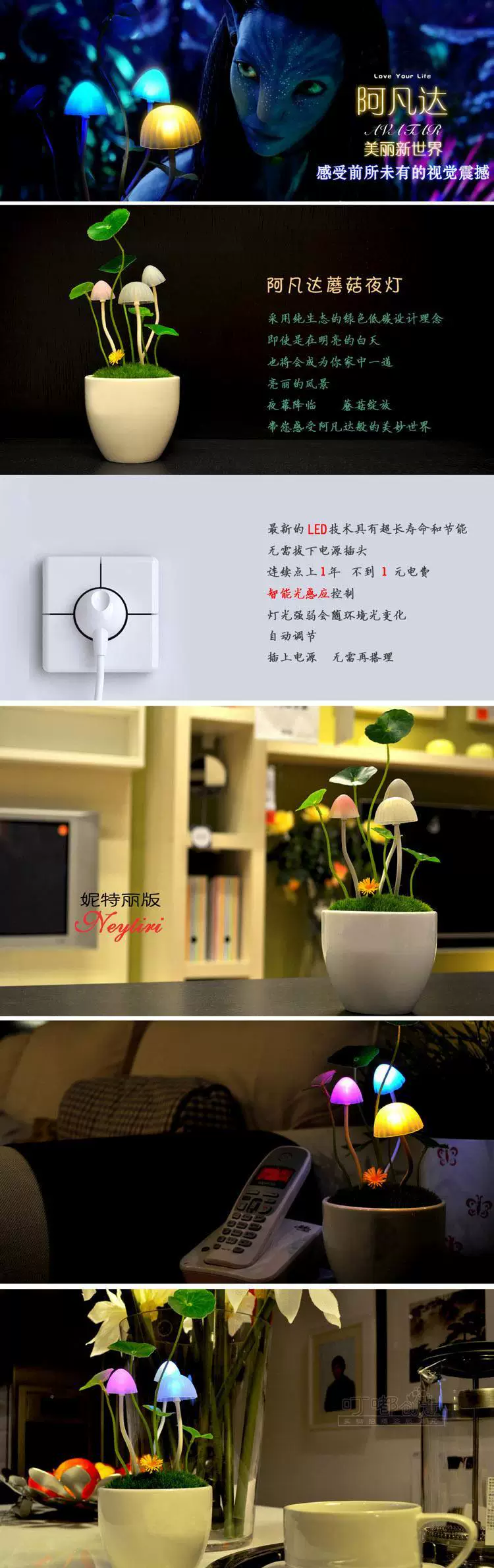 Creative Energy Nightlight,Colorful bulbs light,Mushroom lamp potting ,Kids nightlight,Christmas Gift
