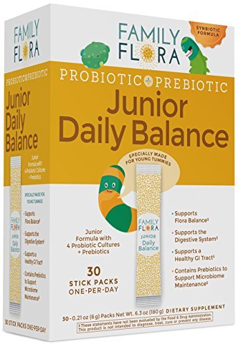 Kids live hectic little lives. Whether at daycare, at school, or on the playground, children are constantly coming into contact with germs and bacteria. Most of the time their bodies are able to fight off infections, but sometimes their immune systems are not strong enough to fight the battle and they unfortunately become ill. Just like adults, children's "good bacteria" make up the 1 trillion cells in the microbiome. The foods kids eat (or don't eat!), the medications they take, the other children they come in contact with, can all interfere with a healthy balance in the microbiome. Family Flora Daily Balance Junior Probiotic + Prebiotic delivers a 10 billion CFU, four-culture combination plus prebiotic formula for children ages 2 - 14, helping young tummies to maintain their balance.