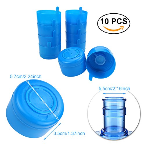 Non Spill Cap Anti Splash Bottle Caps Reusable for 55mm 3 and 5 Gallon Water Jugs with Water Bottle Handle Pack of 10