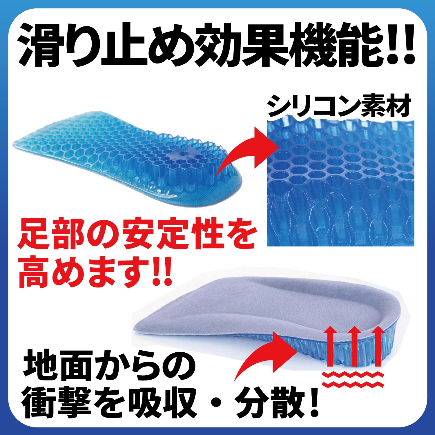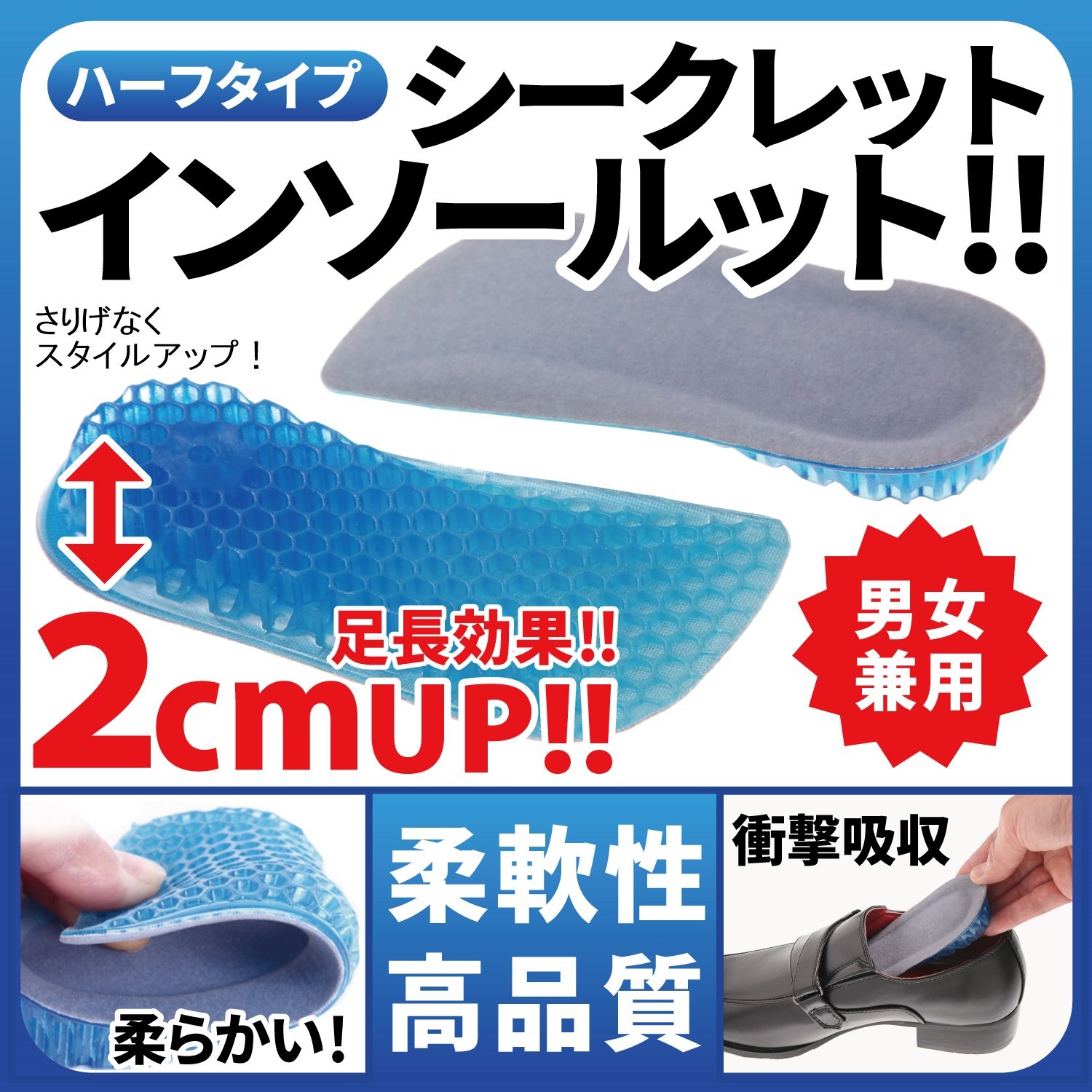 1. It is a half insole (heel up type) that is gentle to the foot absorbing the impact to the heel.