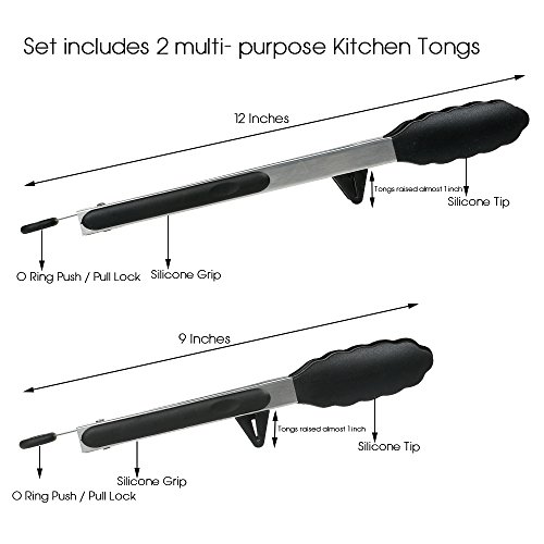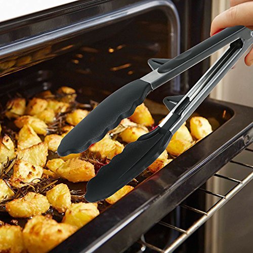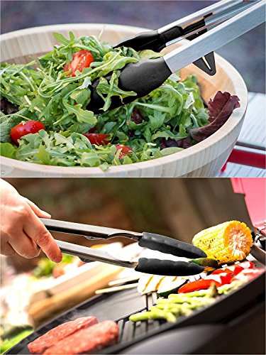 Silicone tipped tongs, premium silicone tongs are manufactured from a 100% food grade silicone BPA and PVC, safe for all cooking uses, multi-purpose tongs are great for delicately and safely turning food