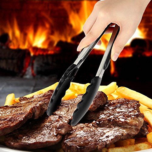 Sturdy stainless steel with premium heat resistant, no-stick silicone tips is easy to clean and dishwasher safe, stain and odor resistant, built in stand keeps the food tongs from touching the desktop to prevent the germ contamination