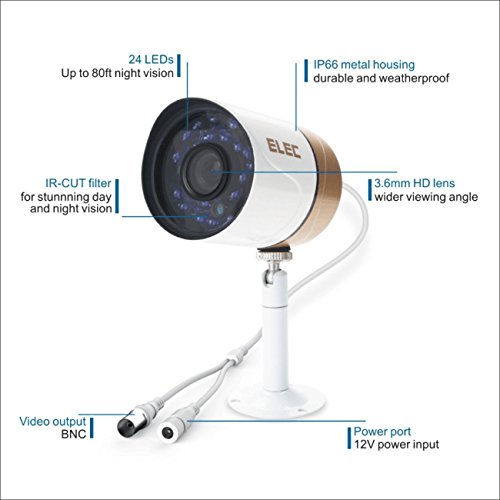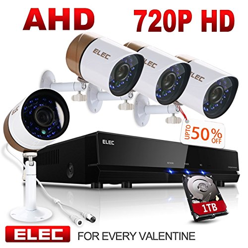 ELEC AHD 720P 8CH DVR Video Surveillance Security Camera System Pre-Installed 1TB Hard Drive, 2000TVL 1.3MP 4 CCTV Weatherproof 60ft Night Vision Bullet Cameras Remote Access