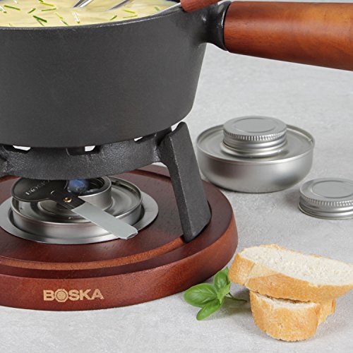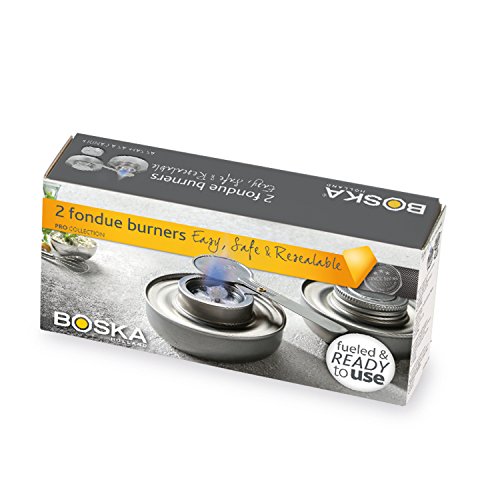ReleaseDate : 2017-07-27 Studio : Boska Publisher : Boska Binding : Misc. Product Description Fondue FuelNo more fiddling around with fondue fuels and gels to fill manual burners. No mess, no charring. This new ready-to-go fondue burner comes with a wick and a safe liquid fuel. From now on you can fondue safely and effortlessly. It puts you in complete control.- READY TO GO: Pre-filled, odorless burners will burn for 5 hours total - just light the wick, and when you’re done seal it up again to use next time- SAFE: The special fluid only ignites in the burner via the wick, so if there’s any spillage, there is no fire risk- ECO FRIENDLY: Made of recycled and recyclable materials- INCLUDES: Two burners and a flame regulatorRevolutionary Safe FuelThis burner is a very safe alternative because you don’t have to fill it up with flammable substances yourself. There’s virtually no risk of spillage due to the burner’s compact and sealed design - and if some does spill, the innovative formula won’t ignite without the wick. This makes the product so safe, it can even be shipped by plane.Lasting EnjoymentThis burner burns for five hours, odor-free. You can adjust or extinguish the flame with the included flame regulator. Done with your fondue in less than five hours? Just extinguish the flame, let it cool down a bit, screw on the lid, and save it until next time. You can store it forever.Contents- 2 pre-filled burners- 1 flame regulatorAbout Boska Holland Cheese waresWe love cheese! Since 1896, here at Boska, it’s been our mission to spread the love of cheese to everyone everywhere. Our innovative family-owned company started as a blacksmith making tools for the cheese farmers in Holland, and now we are the world’s only specialist in Cheese wares: cheese tools and accessories. In short: we sell everything you need to enjoy cheese except the cheese itself! 0