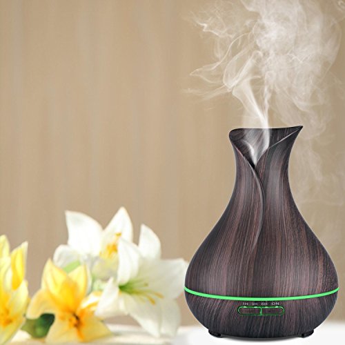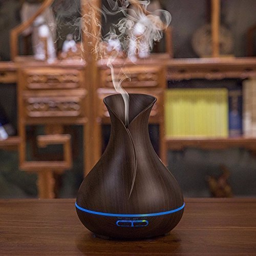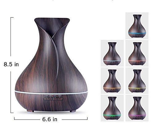 Essential Oil Diffuser - 400ml Dark Wood Grain Aromatherapy Diffuser, Humidifier - Tulip Shaped