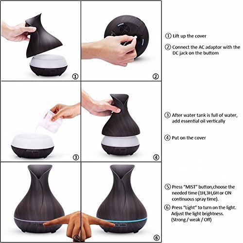 - Relaxing and Invigorating - Natural Aroma 400ml Essential Oil Diffuser Imagine feeling relaxed and refreshed, with calming fragrances filling the room, after a hard day at work, or just during your wind-down time. Well look no further because with this aromatherapy diffuser, you will find yourself immersed in a fragrant, relaxing environment, where the air is full of the smells of relaxing fragrances.