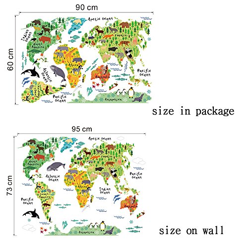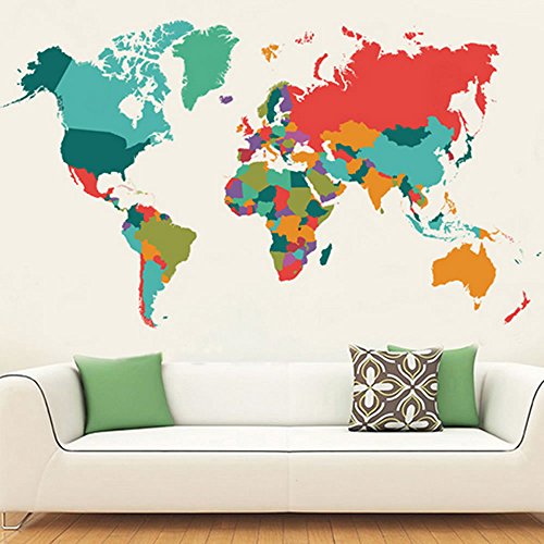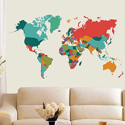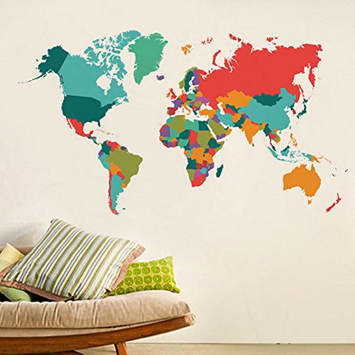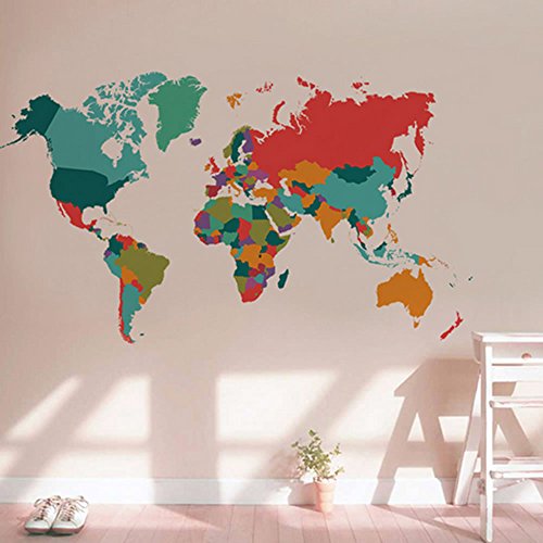 -. Feature : Add STYLE and WARMTH to your Rooms in minutes. / Easy to Apply, Removable, Durable, Pressure Resistance, Shock Resistance, Moisture Resistance. / Various colorful world map decals can work as nursery wall art and teaching educational. / Make of high quality PVC material and environment-friendly. Make no harms to your children. / It is an ideal nursery wall art to build up an inspirational surrounding for your small kids in bedrooms, baby rooms, playrooms,etc.