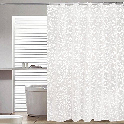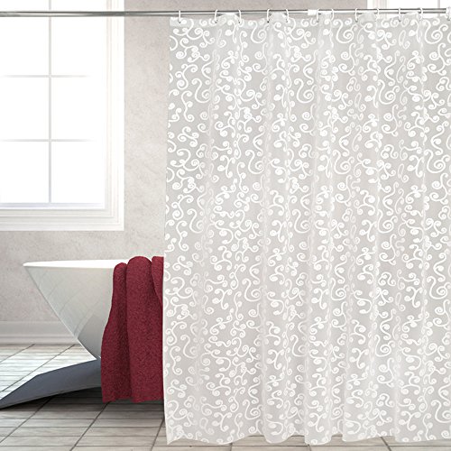 ZISU Shower Curtain Liner with Hooks PEVA Mildew Resistant Anti-Bacterial,Non Toxic,Rust Proof Grommets,Waterproof Extra Long Bathroom Curtains ,White Vine Designs,72x78 Inches