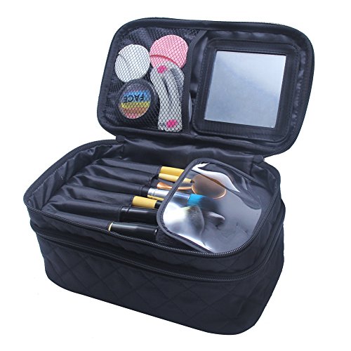 Samtour Makeup Bag for Women with Mirror 2 Layer Large Makeup Brushes Bags Cosmetic Bag Organizer Professional 2 layer Large Makeup Pouch for Travel...