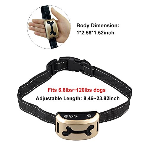 Sensitivity: 1-7 gears adjustable , 1 gear for the least sensitive, 7 gear for the most sensitive. Vibration: 0-7 gears adjustable. 0 gear: the product does not vibrate Shock:0-7 gears adjustable.0 gear:the product does not shock. Please adjust 0 gear if you don't want to shock your dog The products are lightweight. It fits all dogs from 6.6-120 LBS. A single product weight:69g Waterproof and Rechargeable The Length range of the dog collar:3.71~21.46 in Precautions: For the first time, please charge it first It is forbidden to charge the product with an adapter that exceeds 1A SATISFACTION GUARANTEED: Our team of professionals is constantly working to make you happier with fully bark control. We are confident in the quality of our product and give you a money back guarantee within 30 days. Buy with confidence and Enjoy Quiet! 0