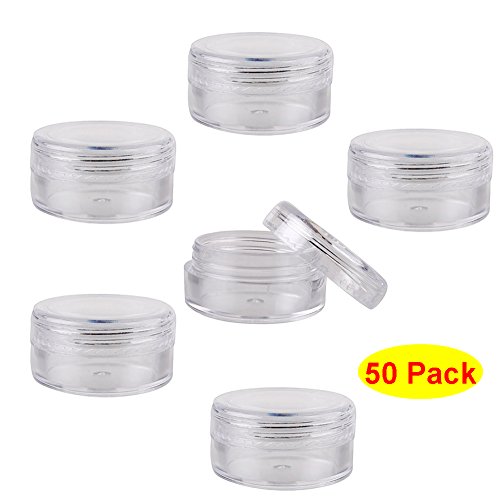 HOSL 5G/5ML Refillable Clear Plastic Cosmetic Container Jars With Clear Screw Cap Lids BPA Free Pack of 50