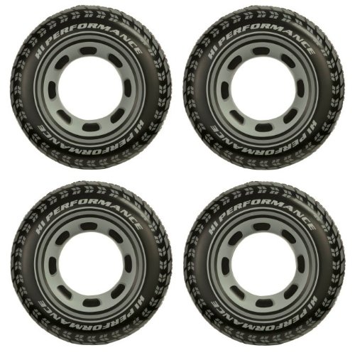 Studio : Intex Publisher : Intex Binding : Toy Product Description Peel into the pool, lake, or ocean with this 4-pack of high-performance Intex Inflatable Giant Tire Tube. Give your tires some air and roll out to the water. These tubes are designed for one driver on each and feature a large design for a comfortable ride. They each measure 36 inches in diameter and are for ages 9 and up. These Intex Inflatable Giant Tire Tubes are quality tires with the tread and traction to last summer after summer and it's always good to have some spares. 0