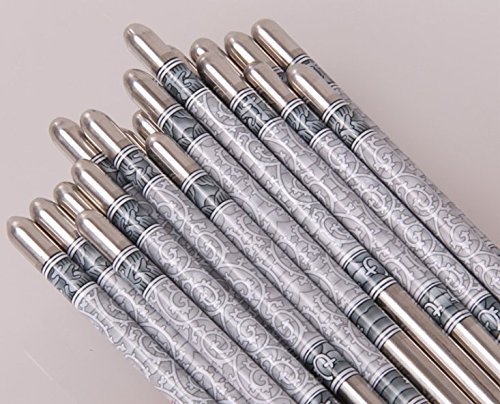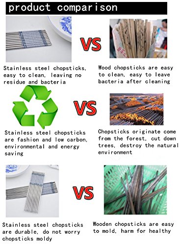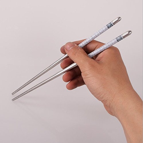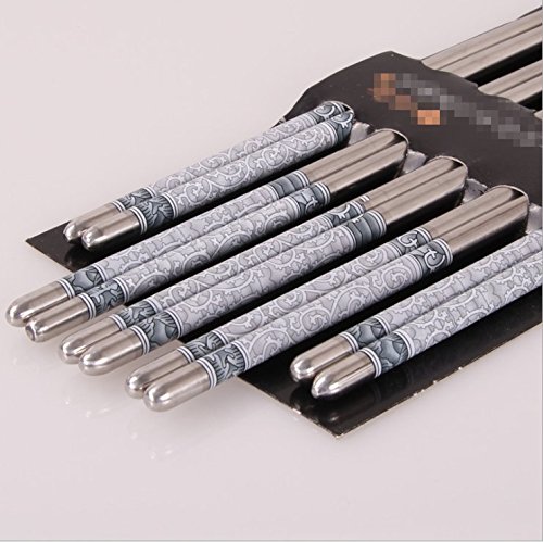 PEXIQAKA 5 Pairs of Metal Stainless Steel Chopsticks 8.8" Long Reusable (blue and white porcelain)