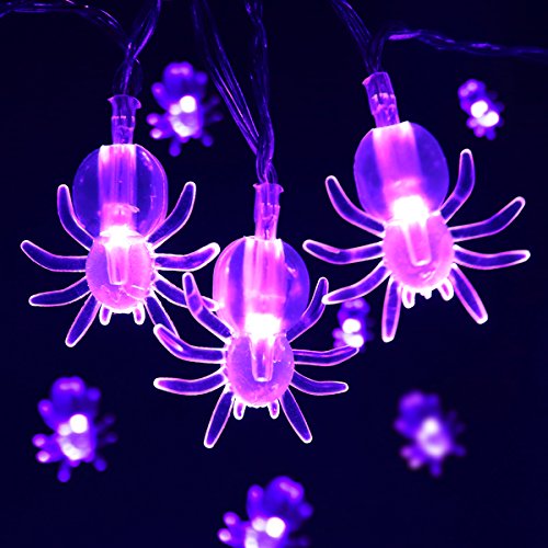 Purple Spider Halloween String Lights,7.5ft 20 LED Battery Operated Holiday Decorations Lights for Indoor Christmas Party Garland Decor